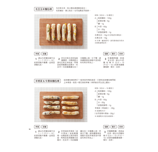 基於這樣的經驗,本書內容一點一滴成形。吉永老師開始思考:有沒有什麼方法,可以讓每天忙於工作、家事和育兒的媽媽照樣可以替小朋友做點簡單好吃的麵包?於是,「麵包棒」這個靈感產生了。