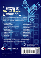 Visual Basic是學習程式設計的入門語言,為了避免學習語言上的不順暢,全書在介紹各種程式語法時搭配完整的程式實例,並加上充份的註解,來降低許多學習的障礙。