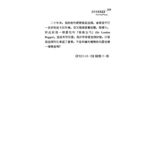 在這裡,我要特別感謝徐訏和何恭上兩兄為我寫序,使這書增添無比光彩;同時還要向振強兄致謝,如果不是他給我打氣,這本稿子恐怕再過十年也整理不出來。