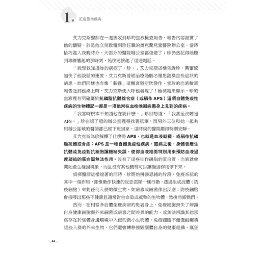 1. 全方位說明何謂自體免疫系統疾病,從報導性案例披露、患者生活與治療過程,到醫界、學界的專家建言,作者用極易理解的方式描述讓你快速瞭解自體免疫機制,並且知道該如何面對它。