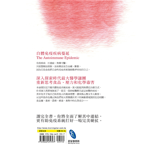 唉,與美國同感悲哀的,是國內的風濕免疫專科竟也淪為內科部裡的最小科,更加諷刺地,會侵犯全身各器官組織、影響國民健康至鉅,堪稱疑難雜症的自體免疫及過敏性疾病,竟然不受醫院及衛生行政機關的重視,才最令人扼腕噴鼻!所幸,經由本書作者持續不懈的努力,終完成此本原名為《自體免疫之流行肆虐(The autoimmune epidemic)》的自體免疫專書,而晨星出版更大膽將書名譯為《自體免疫戰爭》,相當值得一般民眾、醫療界,及主管國民健康的衛生行政官員參閱!閱後大家一起戮力合作,或許終能打贏這場自體免疫之戰!