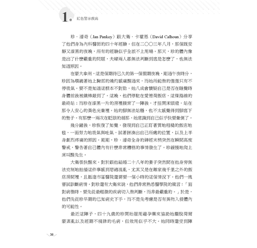 大部分的我們,在生命中的某些時刻,都曾經在腦袋中想像過被醫生宣佈診斷出癌症或是警告我們有罹患心臟病或中風的風險會有多麼可怕,雜誌文章、電視戲劇還有新聞報導標題都讓人清楚認識到這樣的意象。但請想想一個同樣具有毀滅性質的健康危機場景、一個你極少聽見公開談論且幾乎不受媒體注意的危機:想像看似不特定的症狀─手臂及指頭上的刺麻感、突然佈滿臉上的斑點狀丘疹、爬梯時腿部肌肉嚴重無力、關節忽然間感覺灼熱……當中任何一個都發出了生活會大幅改變的信號,且通常都是使人衰竭的自體免疫疾病。