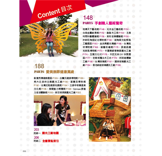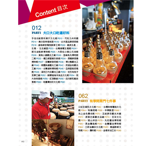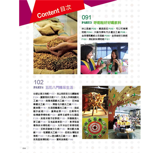 獻給窮忙族、大小朋友、小資男女出遊首選,顛覆你對觀光工廠的想像,工廠不再只是亂烘烘髒兮兮的特產採購中心,除了從做中玩樂分享,更學習包山包海的新知,還能深入淺出了解各行各產業發展故事,全台搜羅精挑細選100家超好玩觀光工廠,食衣住行吃喝玩樂全都包,人客既然來了,走過、路過、就千萬不要錯過!