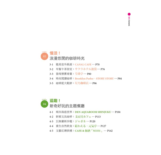 常可以在書店看到專門介紹日本咖啡店的書籍,而東京的特色咖啡店更是不勝枚舉!在咖啡店不但可以上上網查查東西、看看書放鬆心情,更可以發發呆放空一下……。本書精選6家「知る人ぞ知る」(雖並非誰都知道,但其價值及存在受到部分人士的肯定)的特色咖啡店,來東京,不妨也試著在咖啡店裡窩一下午,當個道地的東京人吧!