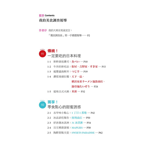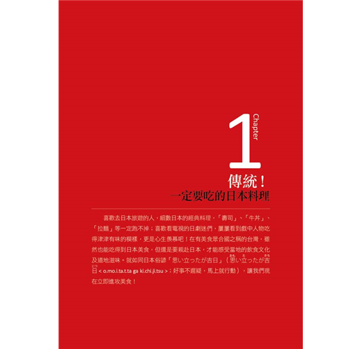 除了傳統美食之外,日本赫赫有名的當然就是甜點了!從日本古早味的小點心、隨處可見的便利商店冰品、精緻蛋糕,到吃到飽的甜點專賣店,本書無一缺漏!常聽女性讀者說:裝甜點的是另外一個胃。現在就打開你的第二個胃,跟著我們一起吃日本甜點吧!