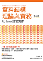 本書使用 Java 語言來實作,利用物件導向的類別(Class)、繼承、巢狀類別和介面來實作各種資料結構的抽象資料型態 ADT,和在最後詳細說明 Java 語言的集合物件(Collections),讀者不但可以學習資料結構的觀念,更可為之後物件導向程式設計的課程與應用打好基礎。