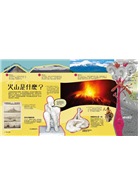 我把書帶回家,丟給我那還不識字的三歲半兒子。原本想陪著他讀,按著書中的解說細細講給兒子聽,然而他還等不及我坐下來,就自己一頁一頁讀下去,興致勃勃,不斷發問:「媽媽,這個洞我有去過!裡面是不是很熱?」(前陣子曾帶他去過鐘乳石洞)「媽媽,這火山為什麼會噴這麼多岩漿出來?」「媽媽,這裡有恐龍耶!為什麼會變成骨頭?」「媽媽,他們在地下蓋鐵路嗎?」「媽媽,這隻是什麼啊?怎麼眼睛那麼小,長得那麼好笑?哈哈哈哈哈………」
