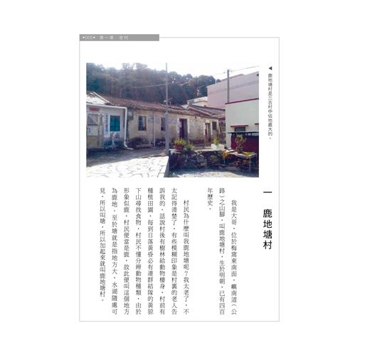 我已一把年紀,除了長壽外,村民都說我是一塊福地,大片平原,樹木參天,土地肥沃,後有靠山,前有平原伸展至海邊,村左右兩側有河流,水源充足,可作耕耘。多年來,有些叫風水大師的人在大嶼山尋龍,找風水寶地,他們都說龍是從大東山起伏,南山而下,結穴於鹿地塘。風水學好似有個講法,叫兩水包金。所以我是金,是福地,長壽是有原因的,呵呵,不論真假,聽到都開心。