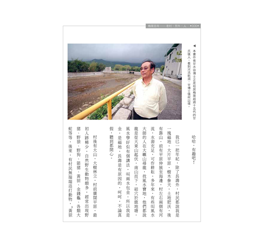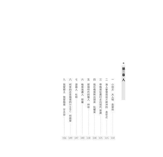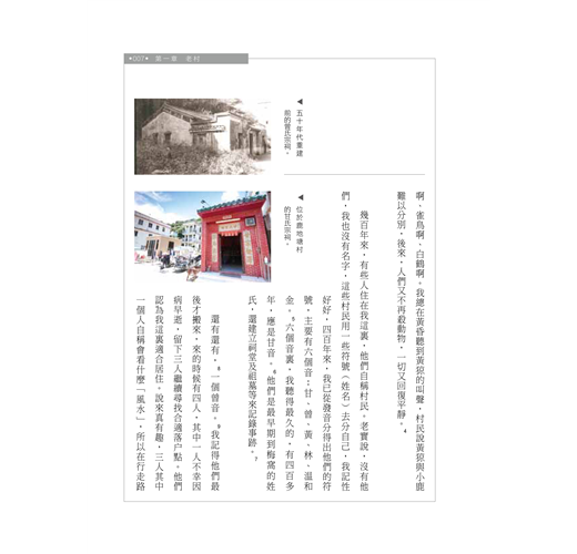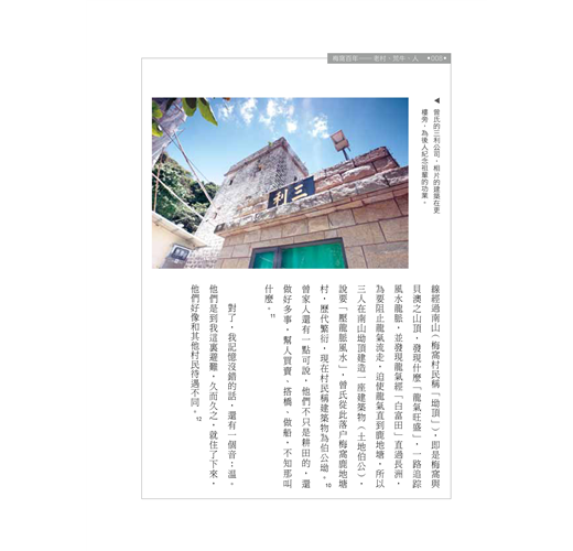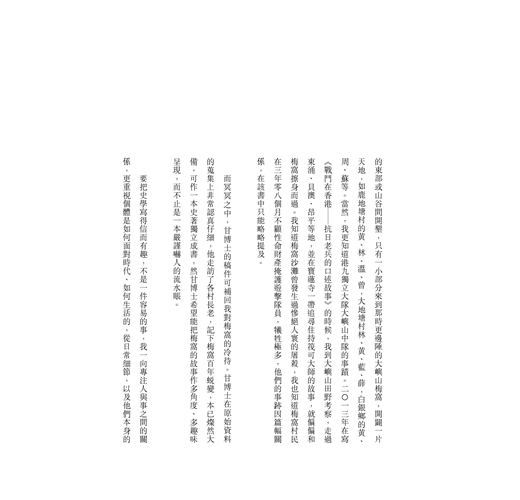 而冥冥之中,甘博士的稿件可補回我對梅窩的冷待。甘博士在原始資料的蒐集上非常認真仔細,他走訪了各村長老,記下梅窩百年蛻變,本已燦然大備,可作一本史著獨立成書,然甘博士希望能把梅窩的故事作多角度、多趣味呈現,而不止是一本嚴謹嚇人的流水賬。