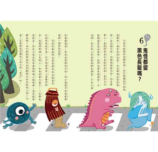 大家可能都有這種疑惑,為什麼傳說中的鬼怪都有一頭黑色的長髮,而且那頭長髮好像會一直長個不停,光想就超級可怕!但是事實上,鬼怪們有各式各樣的長相,當然不可能都留黑色長髮啊!他們也會有短頭髮、大光頭,甚至有人有金髮或綠色頭髮!只是大家好像都覺得,黑色長髮特別可怕,所以想像中的鬼怪都留著一頭黑色長髮!