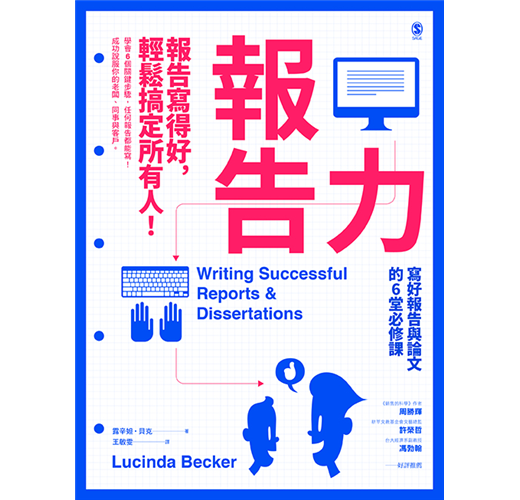 寫出好報告的能力,不論在學校或職場都需要。然而我們的教育卻從來沒有教會我們這件事。本書作者露辛妲‧貝克博士身兼大學講師和專業訓練師,多年來為各界專業人士開班授課,深知大家最需要哪方面的協助,幫助讀者避免犯下隨處可見的寫作錯誤。她提出「6P」系統:思索(pondering)、準備(preparing)、計畫(planning)、停頓(pausing)、產出(producing)與潤飾(polishing),代表寫出有說服力的作品的六個必經階段,並依不同階段提出各種實用的建議與技巧,對學生與上班族來說均極為實用。