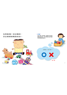 1、 搭配新穎的對錯遊戲牌,讓孩子透過遊戲的方式認識常規和健康的觀念。2、 每兩頁都有一個狀況問題,讓孩子想一想:故事裡的主角這樣做對嗎?並用對錯遊戲牌來作答。3、 家長可參考一旁的答案和小叮嚀並與孩子共同討論,糾正孩子錯誤的行為與觀念。4、 搭配具體相關且活潑、易懂的插圖,便於孩子看圖反省、家長依序勸導。5、 每個行為與觀念,均附「給家長的話」,建議家長如何建立孩子良好又正確的觀念。