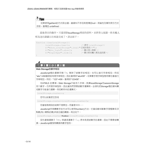 ‧搭配HTML5的WebStorage及Web Database API學習資料存取