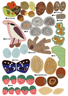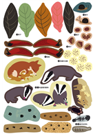 用貼紙貼滿松鼠的藏寶庫,用畫筆幫火蠑螈塗上外衣,在地洞裡貼上狐狸和兔子……