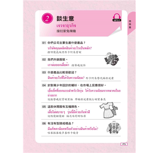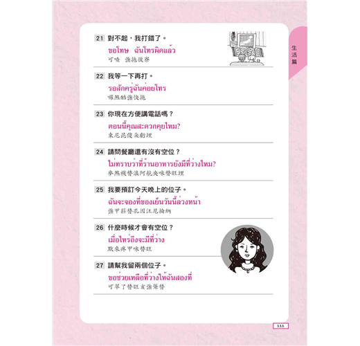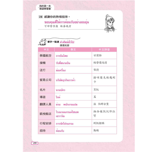 不用上補習班,有此一書,就好像請了一位免費的泰語家教,是你自學泰語的好幫手。請注意錄音老師的唸法,跟著老師的發音,才能講出最標準的語調,反覆練習,自然說出一口純正的泰語。