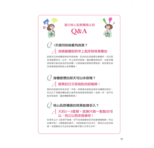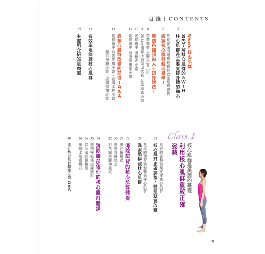 乍聽到「核心肌群訓練」這四個字,各位腦中浮現的是什麼樣的訓練?並非只適用於運動選手或擅長運動的人,即使沒有運動經驗的人、或很討厭動身體的人,只要把意識集中到肌肉上,就能輕鬆做操,持之以恆地進行訓練,就能幫助我們打造健康的身體。