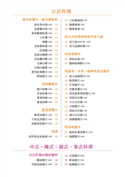包含日式、西式、中式、韓式、越式、泰式……等不同風味,