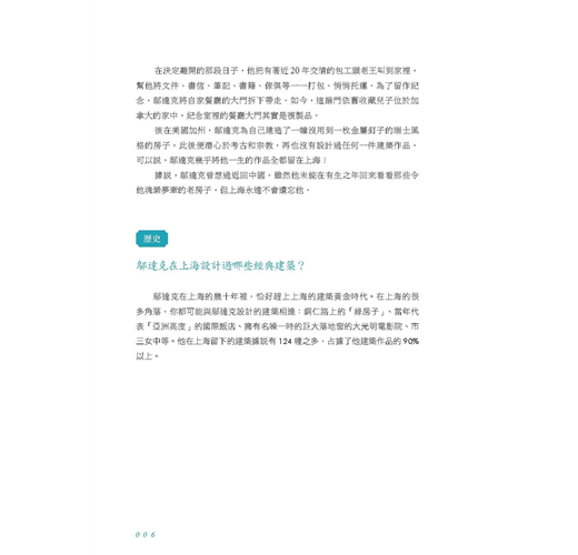 詳細述說建築物的起源,設計想法和相關故事,讓建築多了份人文情懷,從中領略當年發生的點滴往事