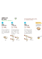 書中給予三種不同的飯量做選擇(吃飯會增加飽足感是減重的好幫手),以常備菜出發最主要是因為希望讀者在家烹...