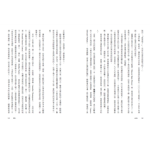 在書中,我說了許多可怕的故事:有無辜男子被迫坐了數十年冤獄、有殘忍的強暴犯逃過法律制裁,還有人由於失誤而作出誤判。這些許多無法預期的轉折和恐怖的結果,讓本書閱讀起來就像一本小說。你可以假設一切都被誇大了,或是認為那些我揭露的不公平只發生在遙遠的彼岸,但其實一切再真實、再平凡不過。