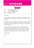 ◦出貨信件◦訴訟調解電子郵件◦訴訟調解回覆電子郵件◦抱怨信◦回覆抱怨信◦通知支付信用證、匯票◦出貨通知◦恭賀信◦回覆恭賀信件