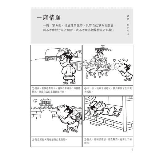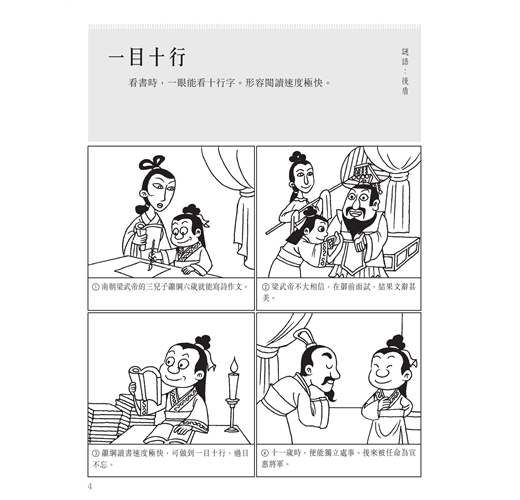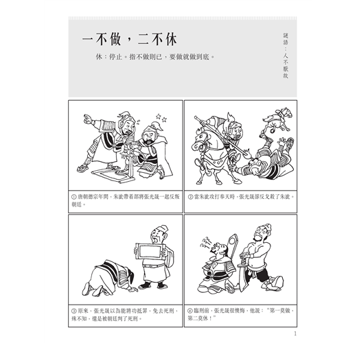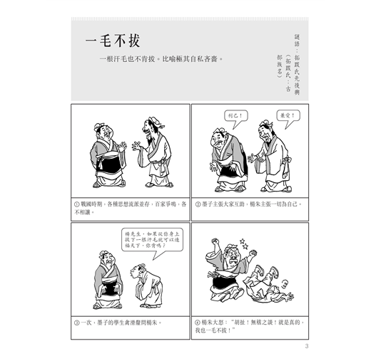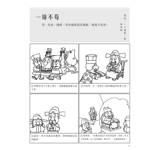 3. 每個成語附有精緻的手繪漫畫,豐富讀者的閱讀感受,幫助更容易融入情景