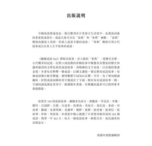 1. 全書共收錄365則成語故事、典故及釋義。