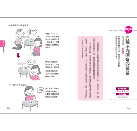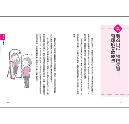 因此,本書儘量選擇進行起來愉快,且不會造成太大負擔,又能享受到成就感的內容進行介紹。練習帶來的成就感,會讓人有持續下去的動力。同時,遊戲式的內容設計也能增加訓練的樂趣。此外,本書也加入了有關失智症的重要資訊,幫助讀者正確認識失智症與預防失智症。