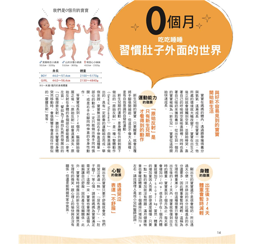◎以月齡別分章,單元式說明寶寶的發育與發展,洞悉寶寶會做的事情&心情。