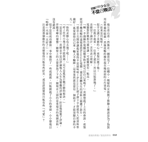 其實也聽不太懂夜梨與桃一搭一唱在說些什麼,眼睛已轉起圈圈的夕川板,「嗚咿~」的回過神後,為她切換了下一頁。
