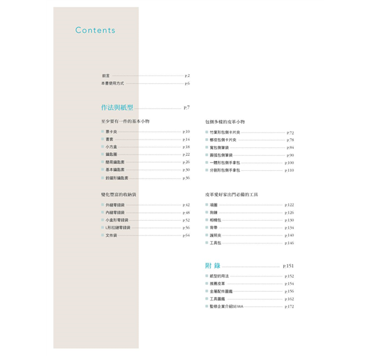 本書記載了24種皮革小物的紙型與製作步驟。不問年齡性別,每個人皆能使用這些款式基本、設計自然好用的作品。除此之外,也收錄許多活用手作風格,可應用在各種小物上的技巧與構造。直接製作,或是加入尺寸或形狀的變化,甚至加進自己的原創發想,都能完成作品。請隨性依照自己的興趣與喜好,製作獨特的皮革小物吧。