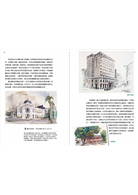 畫太陽餅街因為招牌顏色顯眼,商店陳列琳瑯滿目,其實用簽字筆來畫速寫是絕佳題材,一路由自由路二段移動,可以畫街景,徵得店家同意也可以畫店中熱鬧的擺設,讓城市中速寫更為多采多姿。畫完一列太陽餅店其中會有一家非常顯眼的店「宏信大藥局」站在街口,這個藥局日治時期叫「田中藥局」,1951年改名為「宏信」,百年來它一直是中部4縣市數一數二的藥局,現在因應時代需求除了藥品販賣批發、處方簽調劑之外,更有美容藥妝、營養保健產品加入,到了台中若有需要諮詢找宏信藥師就對了。緊接著來到台灣大道路口,進入眼簾的是一棟仿古希臘羅馬樣式的灰白色建築,它是在1938年興建完工的彰化銀行新總行,厚實穩重的外型營造銀行給人信用穩固的意象是相當成功的設計。緊臨彰銀右側又見一棟辰野金吾風格─紅磚與白色系飾帶建築物,這棟保存完整的老建築與台中火車站同期同風格,原為當時台中三大富商之一的盧安所起造,于1909年完工,建築物呈現當代歐風時尚,氣派大方。來到這個街口,喜歡寫生者有得忙了,不管你要在哪個角度,都可以畫,而且都有騎樓可遮雨避陽,舒適極了。孫老師會在「全安堂太陽餅博物館」台灣大道的對街廊下作畫,可正面可側面,右邊帶上彰化銀行,左邊加上另一棟樓房,將全安堂的紅磚建築做為主角,整張構圖就很聚焦又不顯得單調。來到這個街口,喜歡寫生者更幸福了,畫完外觀,先休息一下走進「全安堂」來感受這棟百年建築內部風格,並嚐嚐太陽餅的研發老師傅的真傳風味,一樓有糕餅販售之外,更能預約體驗太陽餅DIY手作課程,二樓有糕餅模具、太陽餅歷史、珍貴文件的陳列展示,更有一處兼具喝咖啡、辦展覽的藝術展演空間,在外面寫生累了可以上樓喝個咖啡小歇片刻,看看街景,欣賞屋頂木結構樑柱之美,手癢癢地就畫張室內速寫也很棒喔!