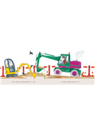 本書透過色彩明亮的畫面,讓孩子經由馬路施工的過程,清楚地認識各種機械工程車輛。作者將車輛的結構、管線等細節詳細地描繪下來,各種不同色彩交織成豐富活潑的構圖,除了在書中加入許多可愛的動物,淡化機具車輛冰冷的感覺,作者也將適量的資訊放進書裡,讓孩子在愉快的閱讀經驗中學習。