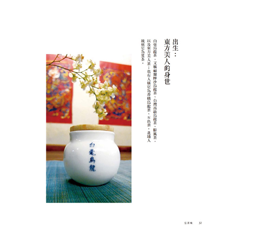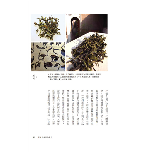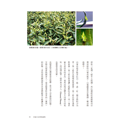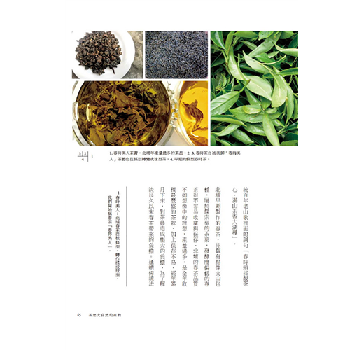 ★書中以大量圖片呈現,除北埔茶園風光、製茶過程外,更有多張烹茶、品茶、玩茶、賞茶、藏茶的照片,藉由文字與圖片的編織,營造生活禪的閱讀氛圍。