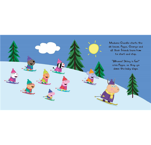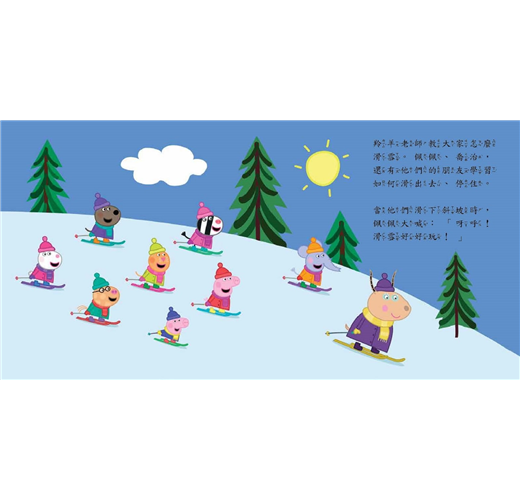 佩佩和她的朋友向羚羊老師學習如何滑雪,但是誰可以一路滑下山,贏得羚羊老師的特別獎杯呢?