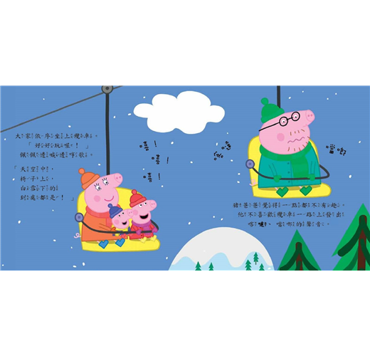 我在滑雪度假時,弄傷了我的膝蓋、肌腱,所以我買了這本書給我的孫子,部分也能向我三個孫子解釋為何我這個老奶奶會搖晃跌到。《滑雪趣》十分有趣,把我們都逗得咯咯笑,又是另一本粉紅豬小妹的好書(感謝老天爺給了我們多元多樣的粉紅豬小妹)。── S‧柏貝克