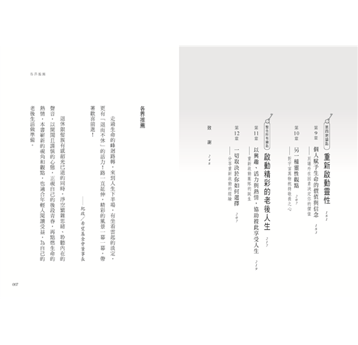 「成功老化非偶然,重啟人生勢必然。本書提供邁向成功老年的實踐指引,開卷悅己又悅老矣。」