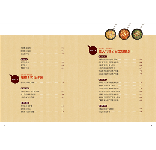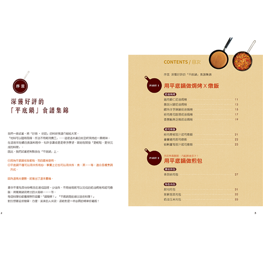 本書為日本知名食譜雜誌ORANGE PAGE專門為平底鍋設計的精心料理。書中的料理不單只是一般常見的點心,而是收錄一些從1個人到宴客都,像是水煎包、炸雞、義大利麵、PIZZA、蛋糕…等。它們的作法簡單得令人不可思議,請務必在家裡動手試上一試。