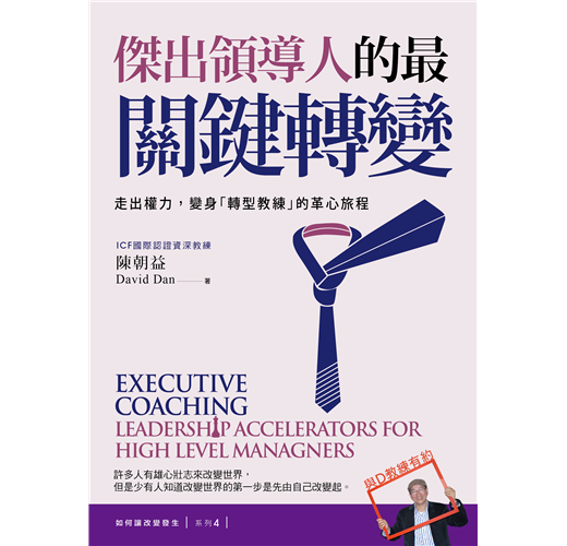 從永遠走在前頭的科技產業總經理,到不斷要人「慢下來」的高階主管教練, David(陳朝益)教練自己的轉型之路,就是今天領導人最好的典範。……當他再度出現在企業領導人身旁時,沒有人比他更適合來告訴大家:如何轉型,如何傾聽,如何建立團隊的信任,如何讓改變發生。