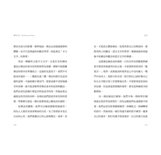 感謝許多人能使這本書順利地出版。本書的緣起來自二○一○年我對西方人在美國塔城聖嚴禪苑(禪修中心)的開示紀錄。英文版The Essence of Chan在二○一二年上市;中文版是由常悟法師請張芝瑋女士翻譯,最後由法鼓文化編輯部修潤。除了請我演講的道場、禪眾,以及整理本書的諸君,我最感恩的是我的師父聖嚴法師。如果沒有他,也就不會有我。
