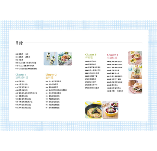 運用玻璃罐、保鮮盒、紙杯、小鑄鐵鍋等容器,變化出各種野餐料理,完成後直接帶出門,享受野餐好食光!