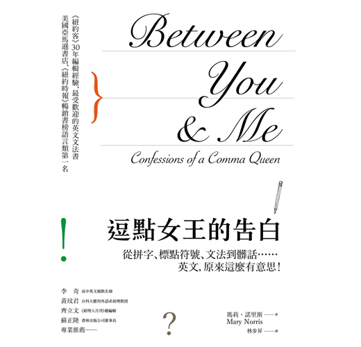 我本身也是英語學習者,雖然在大學任教多年、英文造詣尚佳,但我仍必須承認,自己對英文文法的一些細節仍不甚了解,甚至時有混淆,因此必須在家中及研究室堆放數本文法書以便隨時查閱。不過在拜讀完瑪莉.諾里斯(Mary Norris)的《逗點女王的告白》後,我才了解,原來不只非母語者(non-native speaker)對英文文法如此困擾,多數母語者(native speaker)對它也是一知半解,犯錯連連呢!