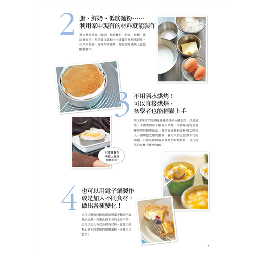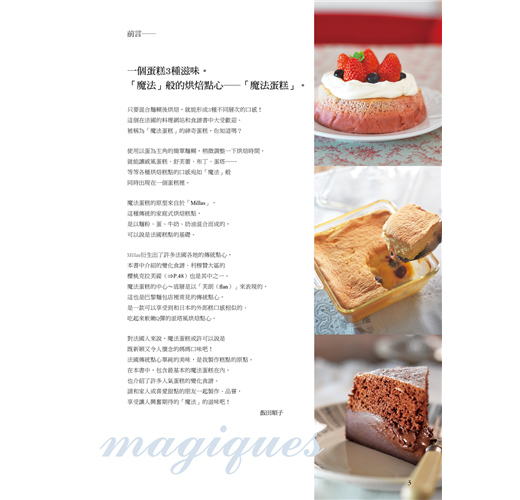 對於西方人甜滋滋的口味覺得不習慣的人,不妨來試試由健康取向的日本人改良過的食譜吧!即便將砂糖和奶油的分量減少,不變的卻是相同的美味!除了基本的魔法蛋糕之外,也會介紹抹茶紅豆、蘋果肉桂、綜合莓果等各種人氣風味的魔法蛋糕,以及用各種蔬菜製作的魔法蛋糕、添加了餅乾或麵包的魔法蛋糕,以及用米粉取代麵粉的魔法蛋糕,讓你吃得美味又無負擔。家中沒有烤箱的人也不用擔心,本書也有利用電子鍋和平底鍋製作的食譜介紹。想要動手做點不一樣的蛋糕嗎?魔法蛋糕絕對是你不可錯過的新選擇!