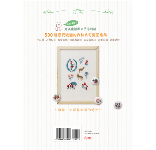 本書收錄多達500種手作者最愛的經典童話刺繡圖案,如遇到大野狼的小紅帽、來自海洋世界的人魚公主、綁著辮子的紅髮安妮、俏皮的北歐風娃娃等人物,還有森林裡可愛滿點的動物們,夢幻花草組合而成的四季變化,以及用無數歡樂舉辨的派對。