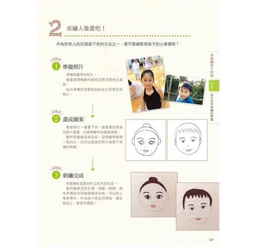 每一個小小圖案,能隨時應用在日常生活中,在圍巾上繡出美食家熊先生、手帕角落繡上自己的姓名或是在孩子的衣服上繡出專屬個人的可愛圖案。