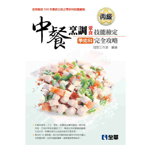 根據勞動部勞動力發展署最新公告(105年.1月修訂)丙級中餐烹調內容(2016.1.1啟用)編寫而成。從報考、刀工、烹飪,到最後的學科題目一路攻略到底,尤其針對新試題的刀工,筆者以自身豐富的經驗轉化成文字,詳實的演示出切割流程及注意事項。新版術科的72道菜餚,其作法同樣詳細記錄各材料的分量以及烹調時間,並附有重點圖解,精準掌握烹調秘訣。書末更附有尺規套量版,提供讀者練習刀工時衡量成品是否符合規定的基準。