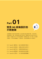 本書蒐集多位屋主的經驗分享好用的收納設計,讓有相同需求和問題的讀者參考。同時,專業編輯群提出絕對要小心的NG設計,避免裝潢新手做錯的困擾。