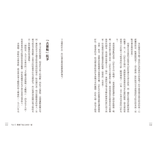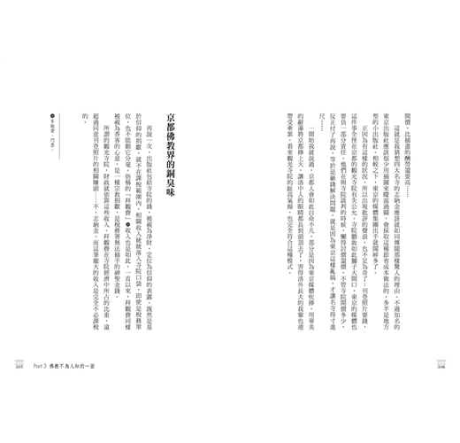 我在過去接觸過不少日本人,單刀直入絕對不是他們的人格特質;傳統的日本人講話拐彎抹角,迂迴曲折,往往讓人搞不清真正的語意;但這本書就像童話故事中說出國王沒有穿衣服的白目小鬼,從宗教、歷史及人文等各種角度,篇篇直指驕傲古都不為人知的真實面相。