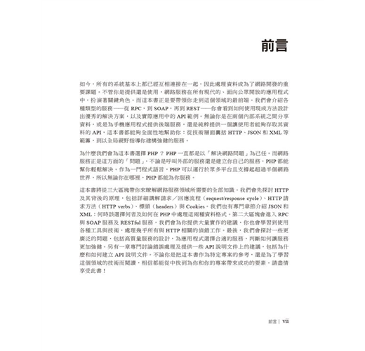 你將會學習到如何使用PHP與JSON、XML以及其他網路服務技術協作。本書第二版針對近期PHP的更新和網路技術的改變添加了新的工具和內容。