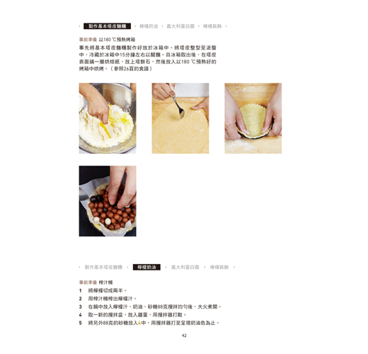 ●每道食譜均清楚規劃出工作時間表,標示每項步驟所需花費的時間,以及不同尺寸塔派最適切的烘烤時間。